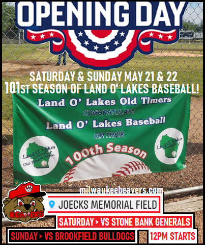 The Beavs open up the 2022 season with two home games this weekend vs Stone Bank (Saturday) and the Brookfield Bulldogs (Sunday) at the 4th-year home of the Beavs, historic Joecks Memorial Field in Lannon. The anthem and first pitch start at noon. Can’t wait to see everyone at the ol' ballpark all summer long!